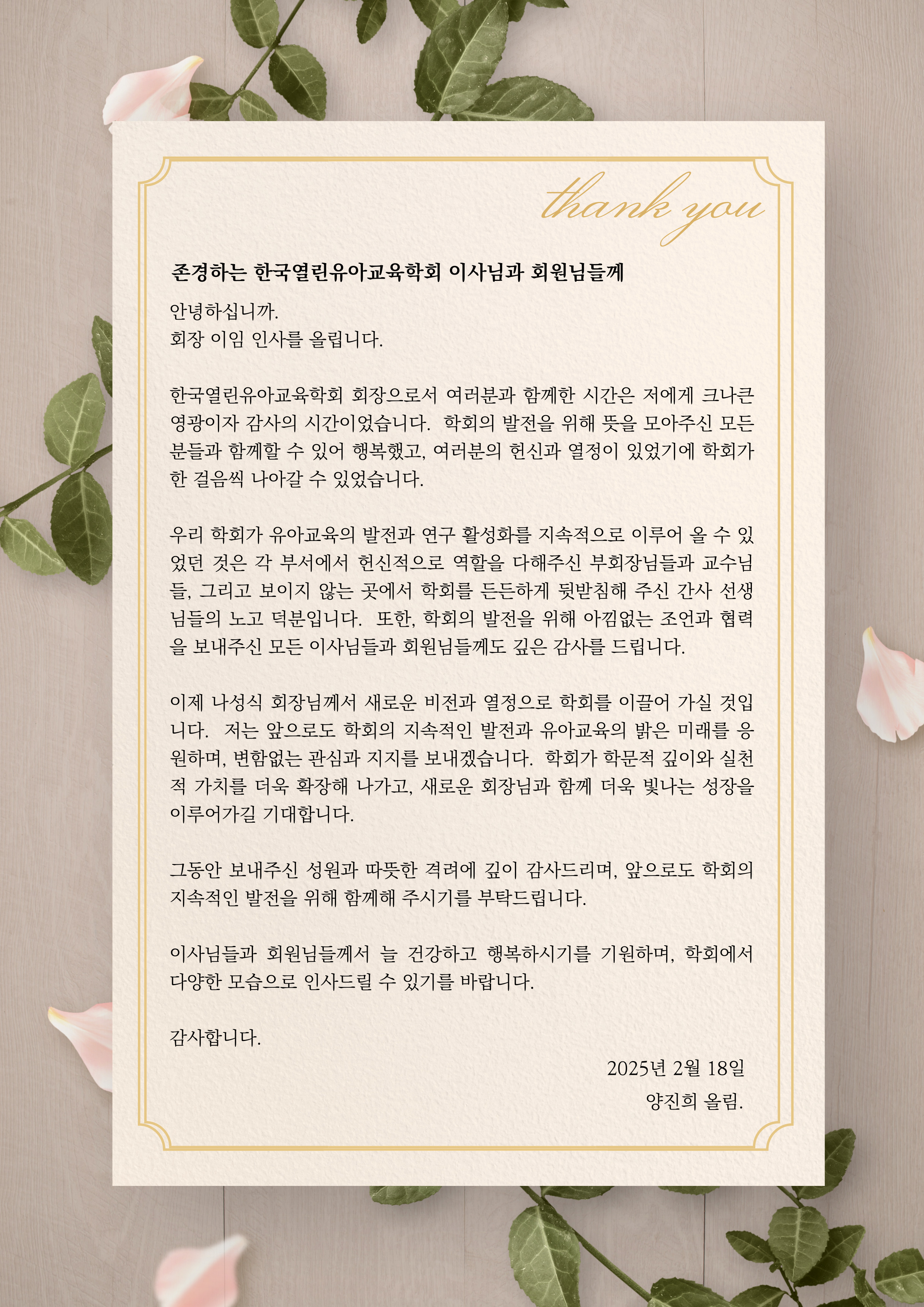 회장 이임 인사를 올립니다.