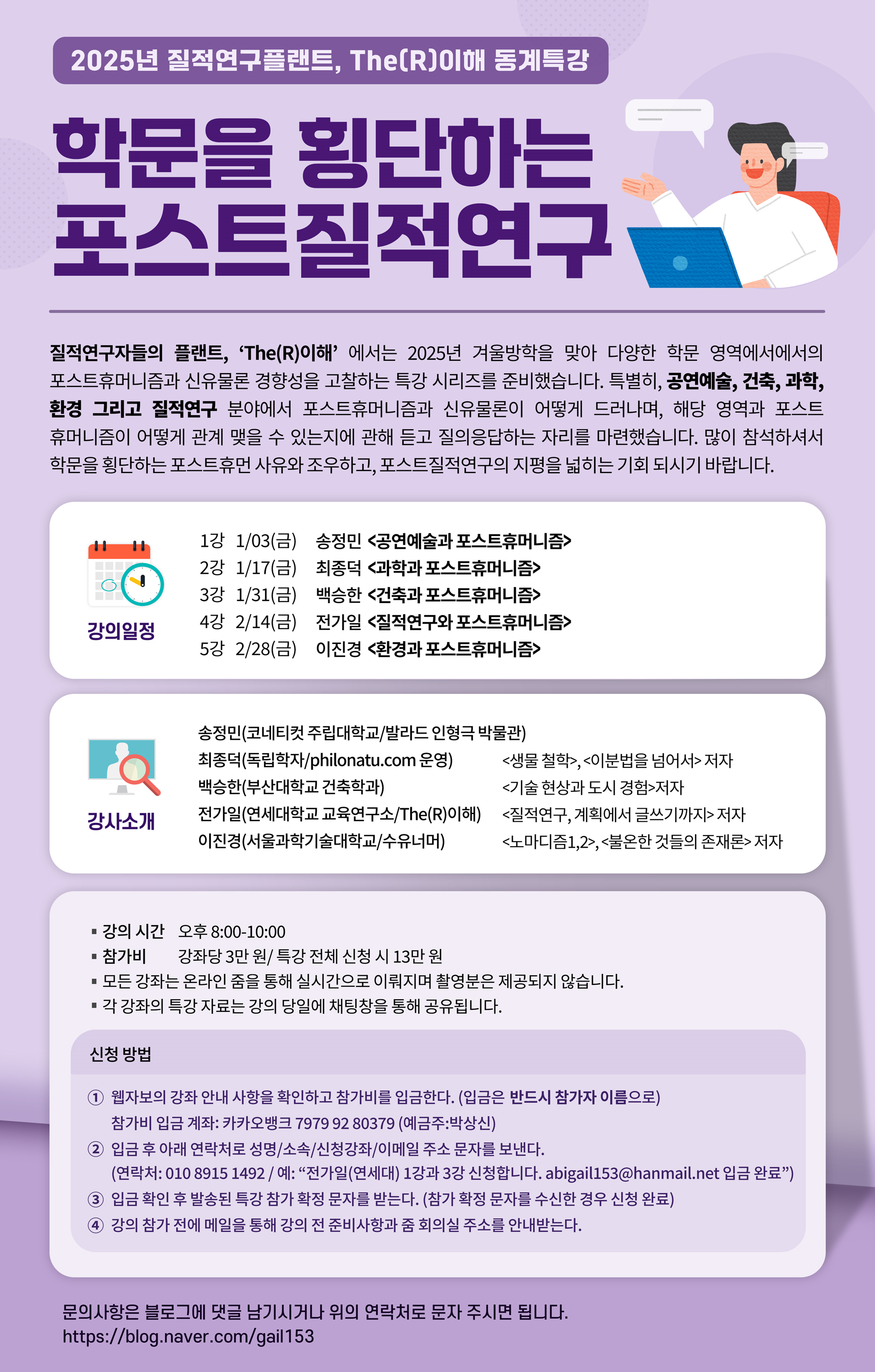 2025년 질적연구플랜트(학문을 횡단하는 포스트 질적연구) 안내