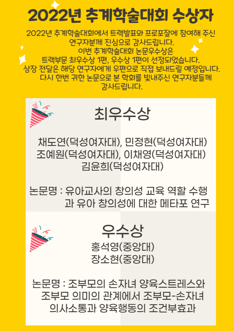 2022년 한국열린유아교육학회 추계학술대회 논문수상 안내 (축하드립니다!!)